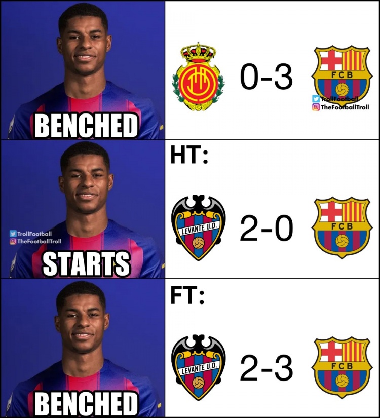 🤔拉什福德替补:巴萨3-0马洛卡